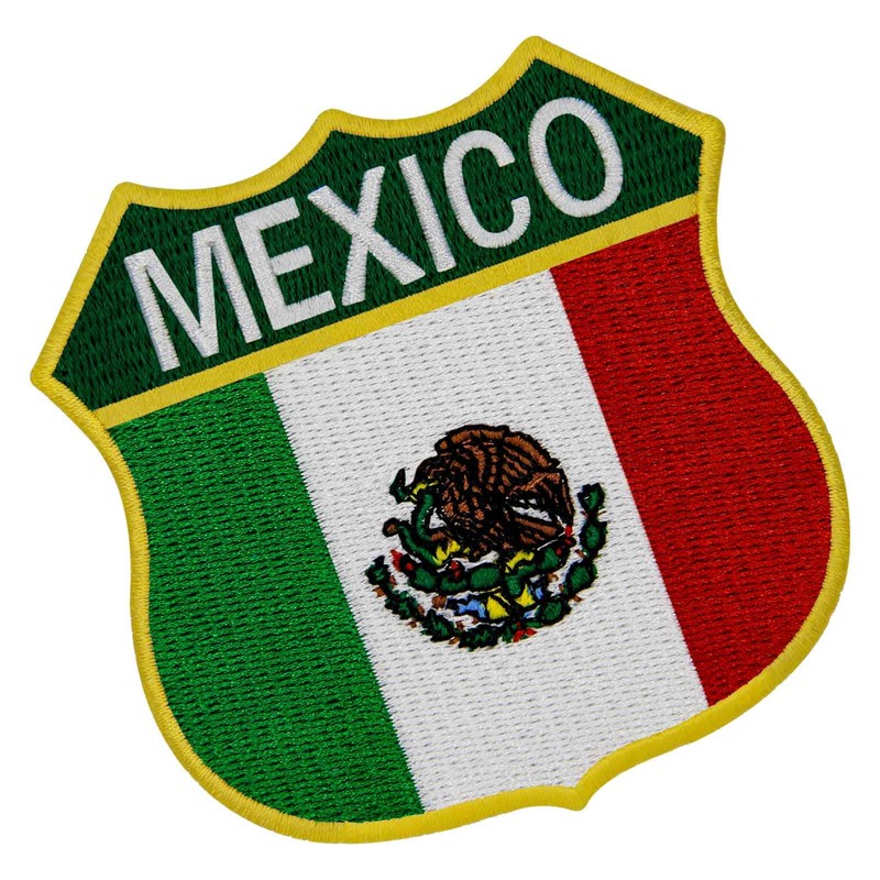EmbTao Mexico Shield Flag Patch Embroidered Badge Biker Applique Iron On Sew On Emblem