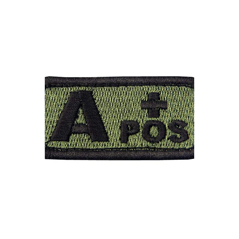 EmbTao Type A Positive Tactical Blood Type Fastener Hook & Loop Patch - Green & Black - 2"x1"