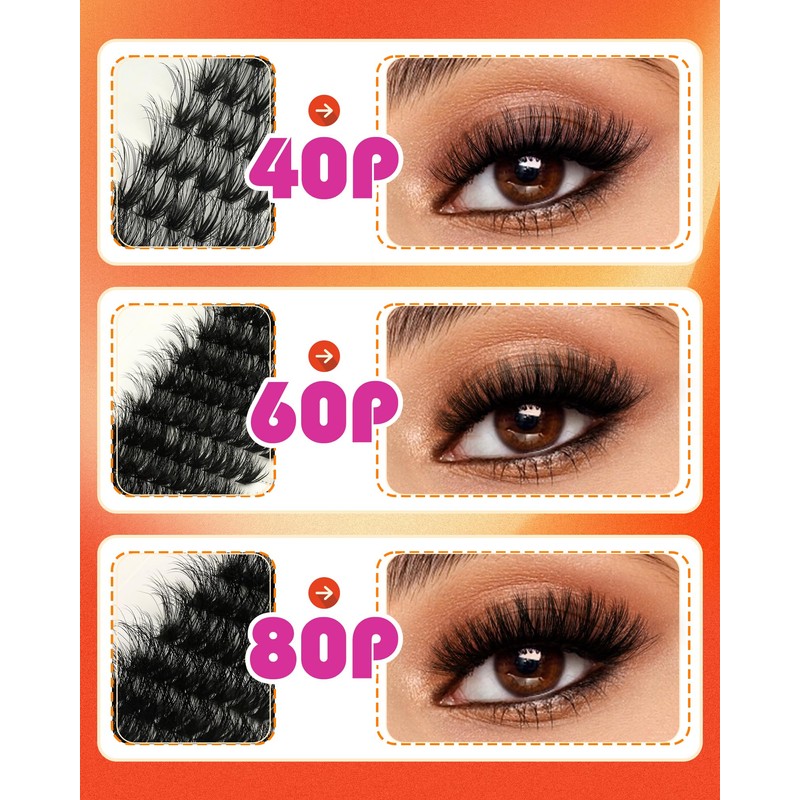 - 3.DIY Different Look Styles: Our individual lash clusters come in a variety of lengths and volumes. The versatile cluster lash pack can be used for a range of occasions, whether it's a night out with friends, a special event or even a day at work. You'll achieve these looks in no time!
