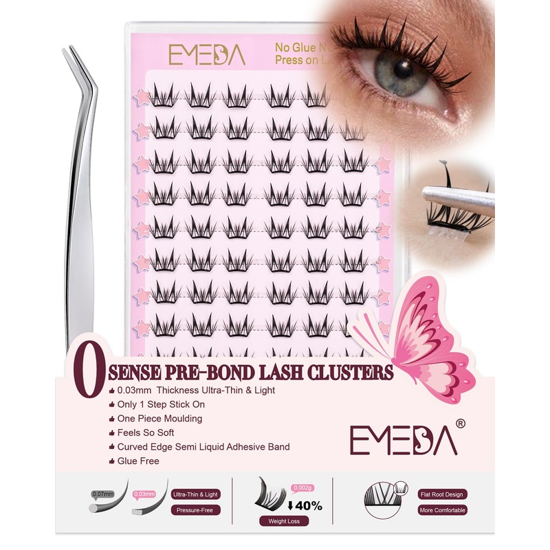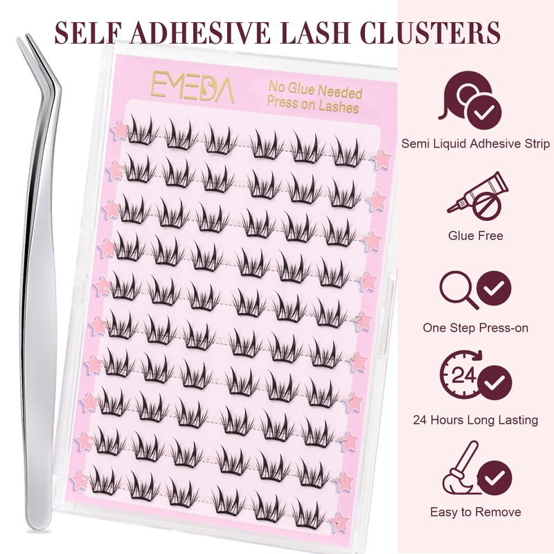 EMEDA Self Adhesive Eyelashes Clusters Stress Free to Wear More Stickier Cluster Lashes Ultra-Light & Thin Press on Lashes No Glue Need Soft Self Adhesive Lashes (0 Sense Natural Manga XLJ)