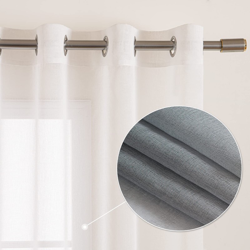 EMEMA Voile Curtain Two-Tone Curtain with Eyelets Transparent Curtain Eyelet Curtain Window Curtain Translucent for Bedroom Set of 2 140 x 225 cm Grey