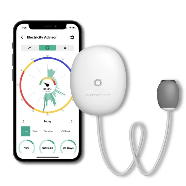 Emerald Electricity Advisor - Smart Bluetooth Enabled Device Monitors and Tracks Electricity Consumption Sending Data Directly to Your Phone. Save Money and Energy.
