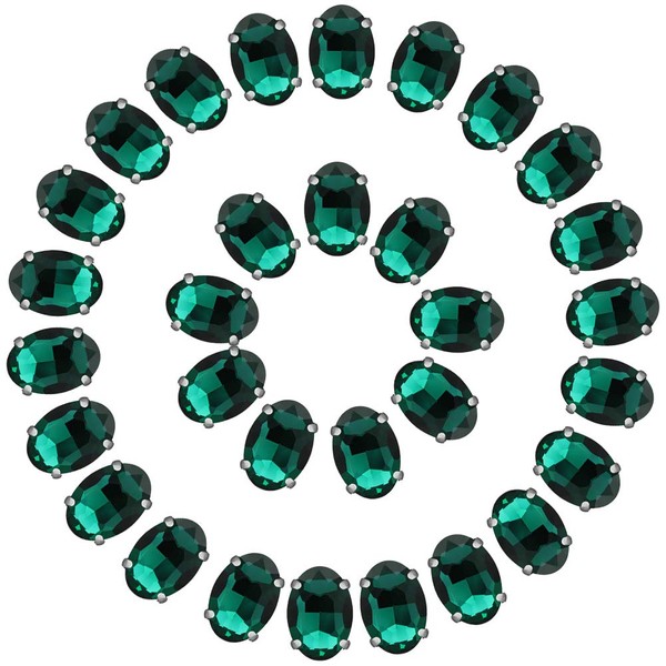 Emerald Green Rhinestones Oval Sew On Rhinestone 50pcs 10x14mm Flatback Rhinestones with Silver Prongs for Crafts Clothes Dresses Shoes Jewelry Making