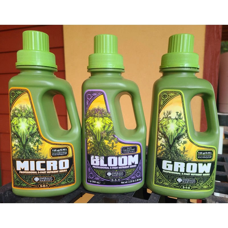 Emerald Harvest 3-PART NUTRIENT SERIES - Micro, Grow & Bloom, 1 Qt. Each