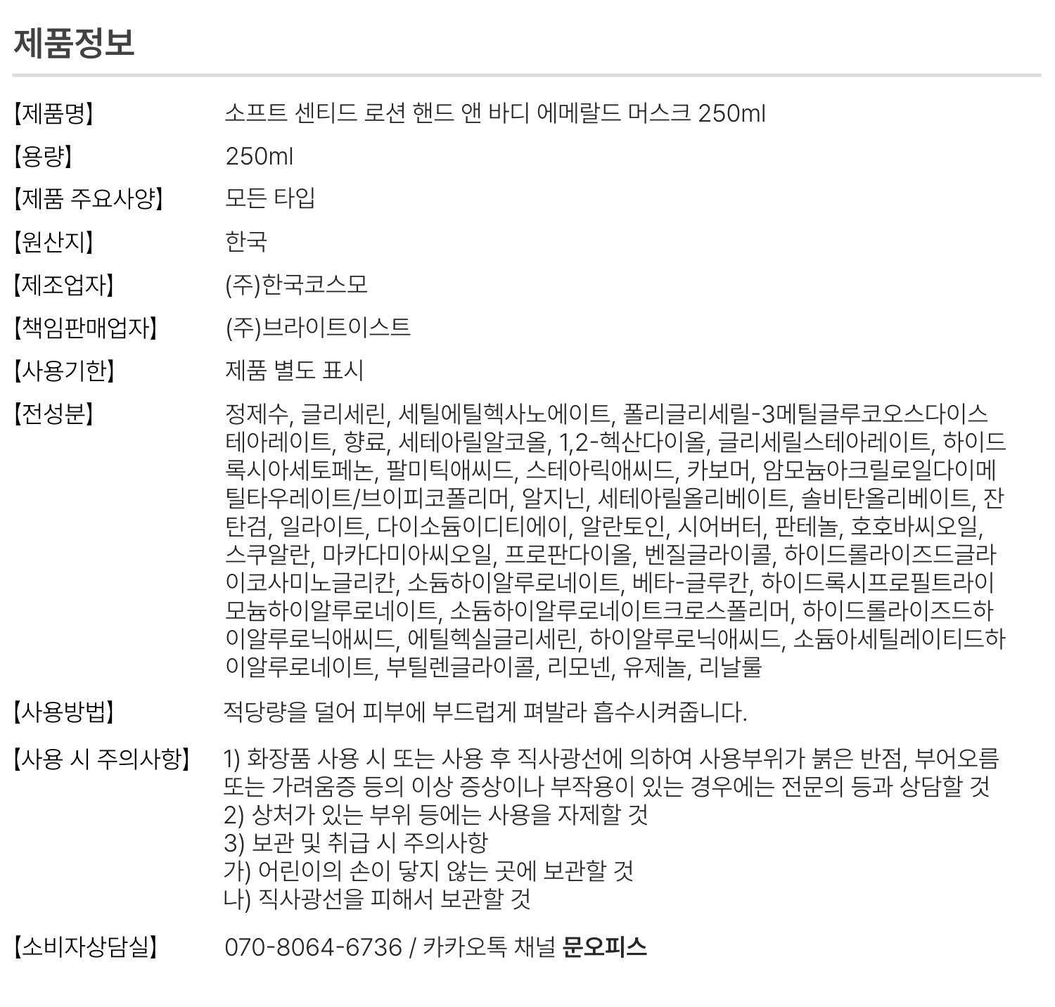 Emerald Musk Hand & Body Lotion 250ml / 에메랄드 머스크 핸드&바디 로션 250ml