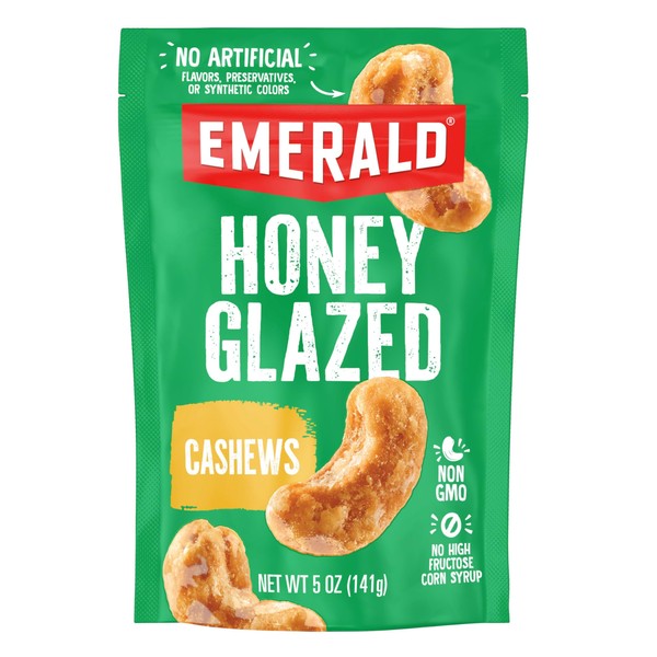 Emerald Nuts Honey Glazed Cashews (1-Pack), 5oz Resealable Bag, Kosher Dairy Certified, Non-GMO, Contains No Artificial Preservatives, Flavors or Synthetic Colors