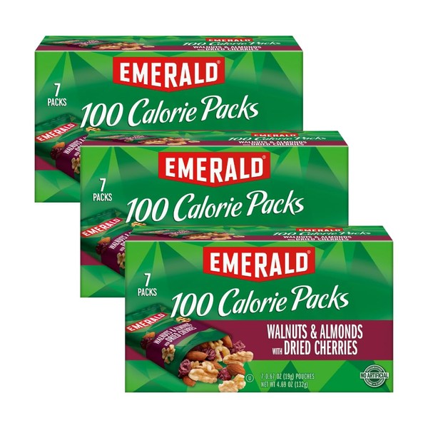 - 100-CALORIE PACKS: Made from a blend of walnuts and almonds with dried cherries, these individually portioned snacks from Emerald Nuts bring a burst of flavor!