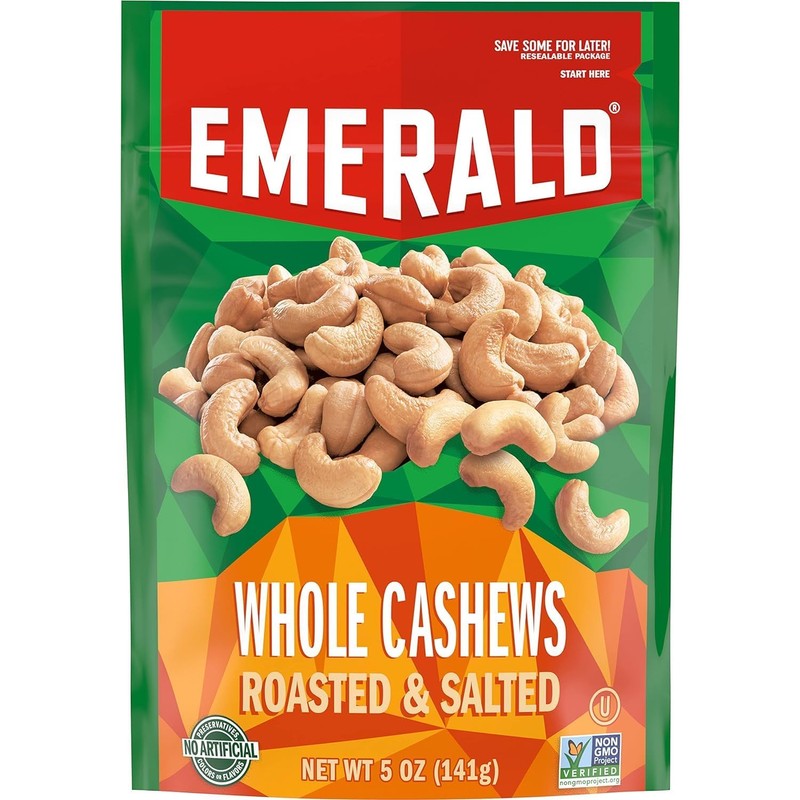 - GRAB A WHOLE HANDFUL: Enjoy the big flavor of Emerald Nuts' Roasted and Salted Whole Cashews! Nuts are the ideal on-the-go, read-to-eat, travel-friendly snack for kids and adults.