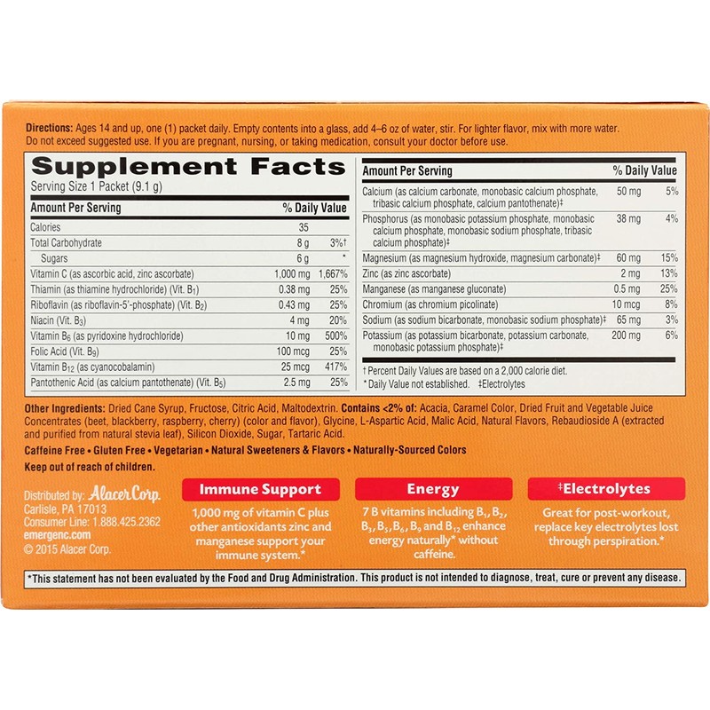 - Includes 30 single-serving packets (0.32 oz. each) of Emergen-C Original Formula in Raspberry flavor