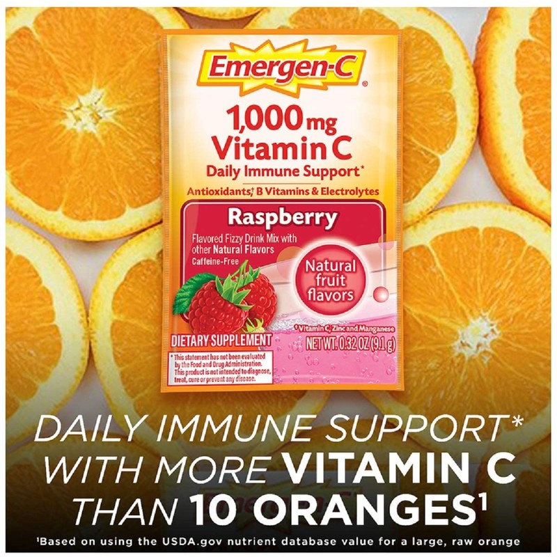 Emergen-C 1000mg Vitamin C Powder, with Antioxidants, B Vitamins and Electrolytes, Immunity Supplements for Immune Support, Caffeine Free Fizzy Drink Mix, Raspberry Flavor - 30 Count/1 Month Supply