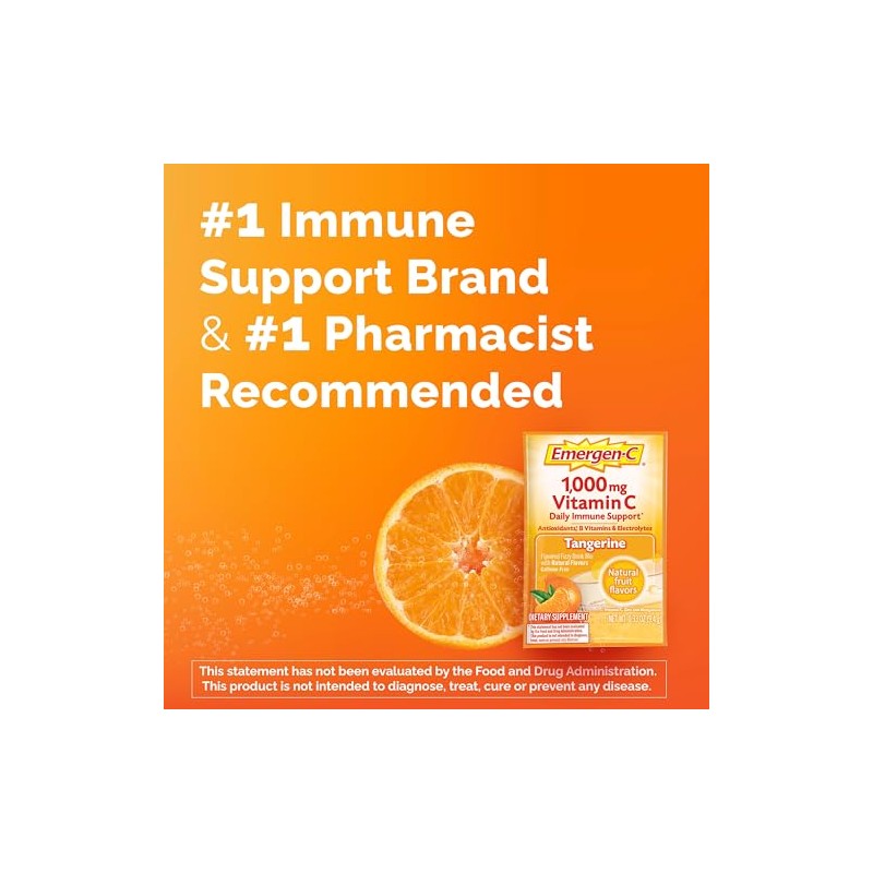 Emergen-C Emergen-C 1000mg Vitamin C Powder, with Antioxidants, B Vitamins and Electrolytes, Vitamin C Supplements for Immune Support, Caffeine Free Drink Mix, Tangerine Flavor - 60 Count/2 Month Supply
