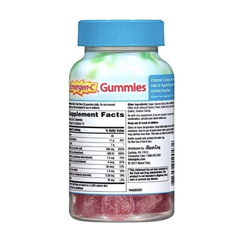 Emergen-C Gummies Immune Plus Vitamin D, Raspberry, 45 Gummies (Pack of 2)