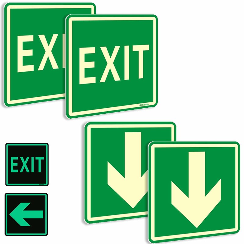 - ✅ INCLUDES: The EMERGENCY EXIT sign have 4 Pieces luminous exit stickers Indication is white with a green background, Size: 6 x 6 inches.