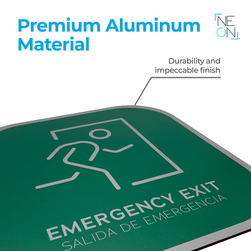 Emergency Exit Sign | Aluminium Composite Sign 3 mm | Indoor Outdoor Use – Simple Installation – 8 x 8 in – Ideal for Offices and Businesses