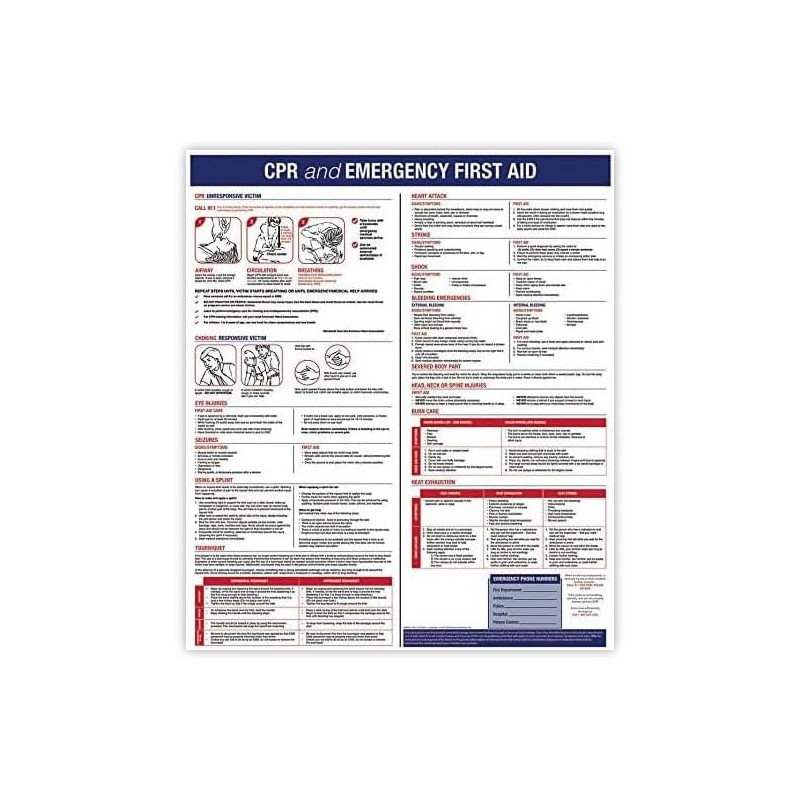 - SAFETY POSTER: This First Aid Poster is a safety essential for any business and gives employees quick how-to steps in the event of an emergency. Directions for response to various injury situations from minor to serious injury are included in this guide.