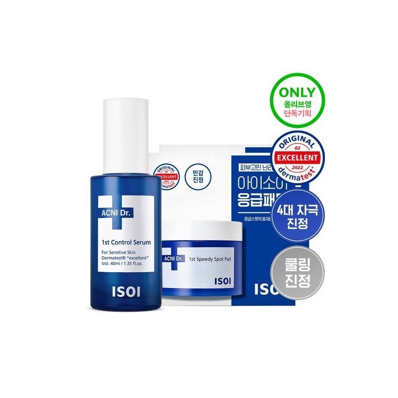 [Emergency Soothing Serum] Isoi Acni Doctor 1st Control Serum 40ml (40ml product + 4 emergency pads) / 아이소이 아크니닥터 1st 컨트롤 세럼 40ml 기획 (본품40ml+응급패드 4매)