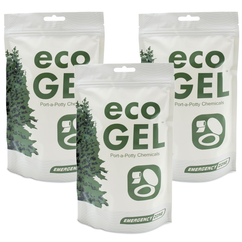 Emergency Zone Eco Gel Port-a-Potty Chemicals - Liquid Waste Gelling and Deodorizing Powder - 3 Pack