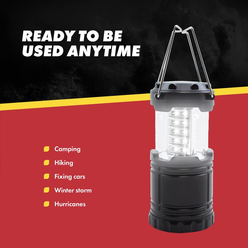 - Light Sources For All: Contains light sticks, LED flashlights, an LED lantern, waterproof matches