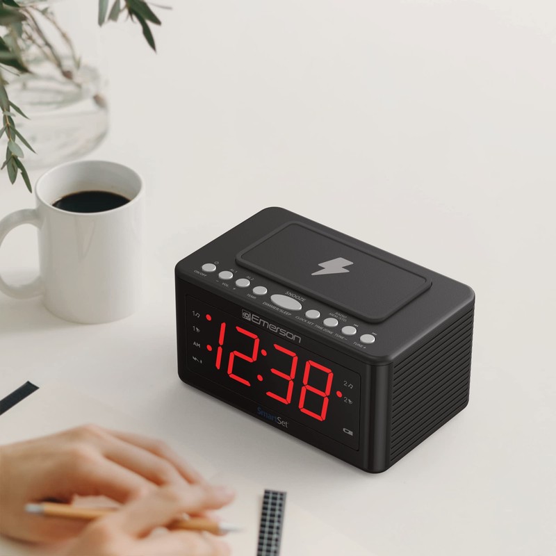 Emerson CKSW0555 Smartset Wireless Charging Alarm Clock Radio Featuring a Lar...