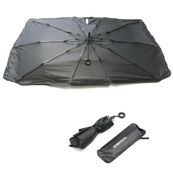 エマーソン(Emerson) 車内用品 日よけ シャフトレスになった紐式傘型サンシェード Lサイズ 幅1490x高さ800mm フロントガラス用 サンバイザーで挟むだけ ルームミラー部スリット設計 吸盤不使用 簡単着脱 EM-531