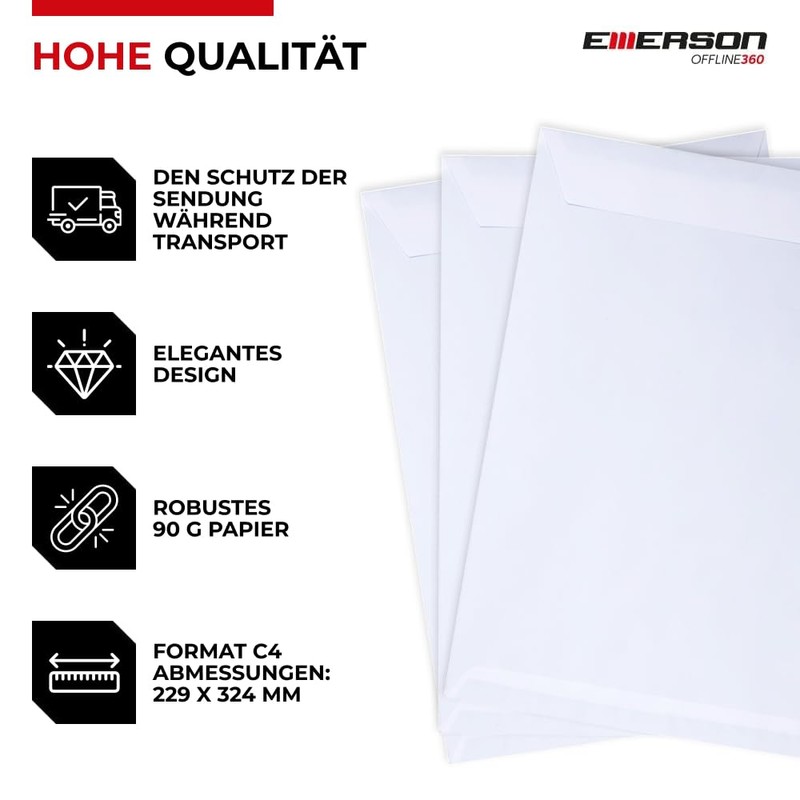 Emerson Pack of 20 White Envelopes DIN C4 229 x 324 mm 90 g Large Envelope A4...