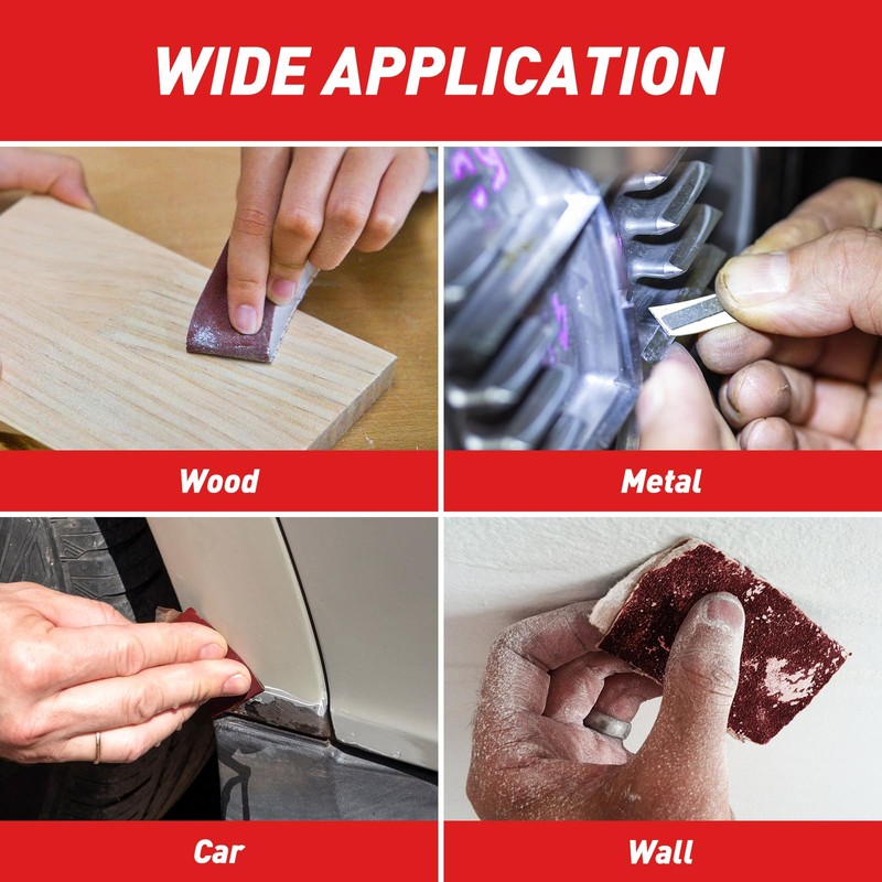 - Precision Contouring: Thin emery cloth for metal flexes around pipes, curves and tight corners standard paper can't reach