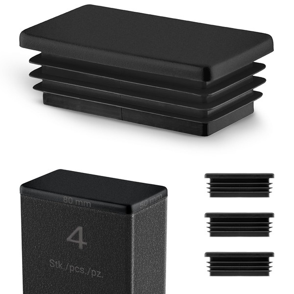 EMFA Lamellar Plugs 80 x 50 mm for Rectangular Tube - Black Plastic Rectangular Plugs 50 x 80 - End Caps Pipe Plugs 8 x 5 cm - Pack of 4