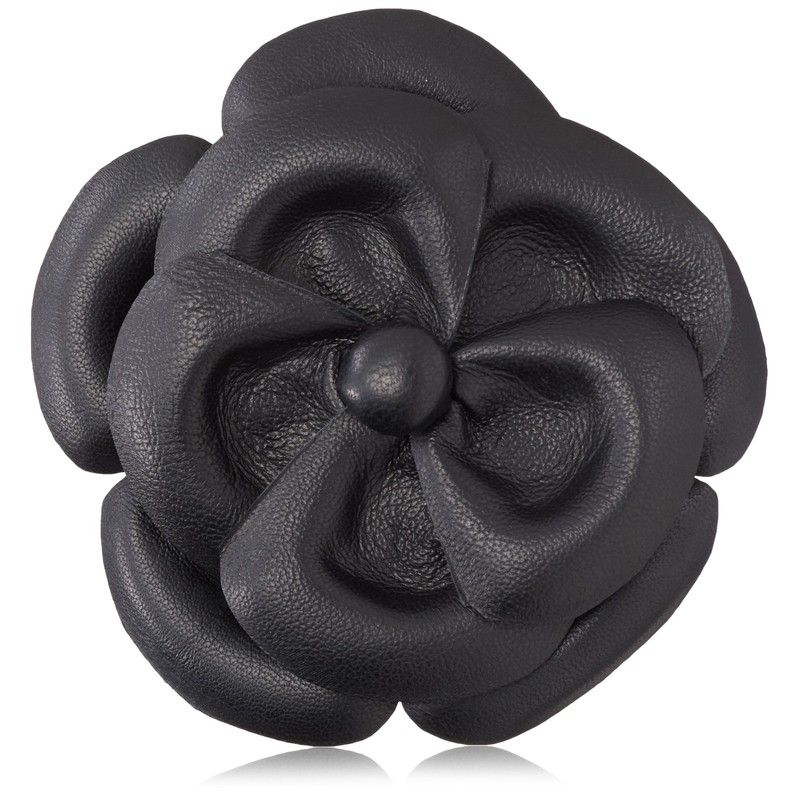 Emi Jay - Barrette de piel grande, diseño de camelia, Negro