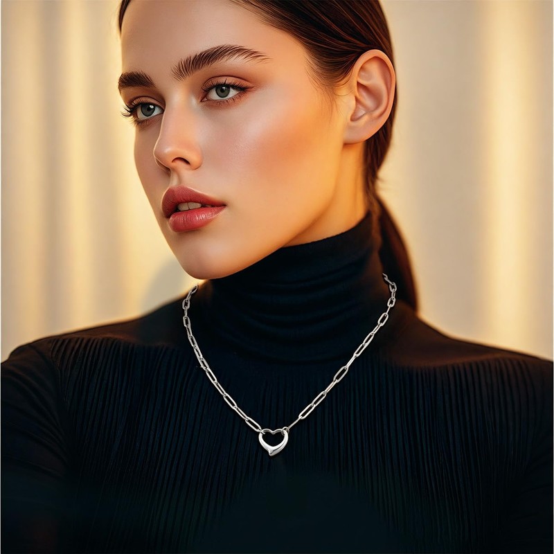 Unique Design: This heart necklace features a unique heart pendant design with paperclip chain, which is stylish and unique. The lobster clasp design is easy to put on and take off, fitting most people.