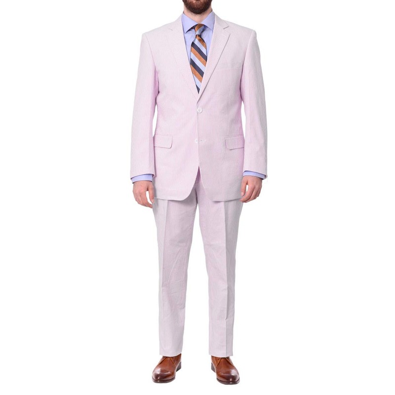 Emigre 38L Men's 100% Cotton Pink Striped Seersucker Suit