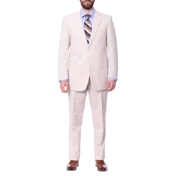 Emigre 48L Men's 100% Cotton Tan Striped Seersucker Suit