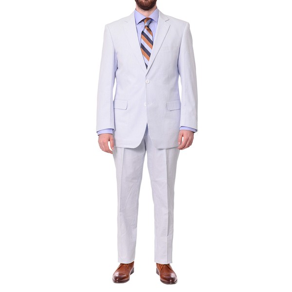 Emigre Classic Fit Blue Pinstriped Two Button Cotton Seersucker Suit (Blue, Numeric_42)