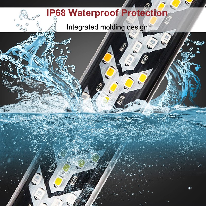 - IP68 Waterproof Flashing Lights - Rust-proof aluminum frame, IP68 waterproof full sealed silicone, long service life, can withstand harsh weather conditions. High intensity LED chips provide maximum coverage and high visibility during the day, night, raining or fog days, 200% brighter than normal single row LED.