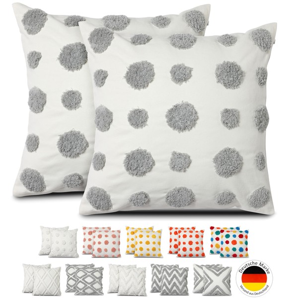 Emilie-Textil Boho Decorative Cushion Cover Made of 100% Cotton, Decorative Cushion Cover, Various Patterns, Stylish, Cosy and Ethnic Chic (2, Grey Dots, 40 x 40 cm)