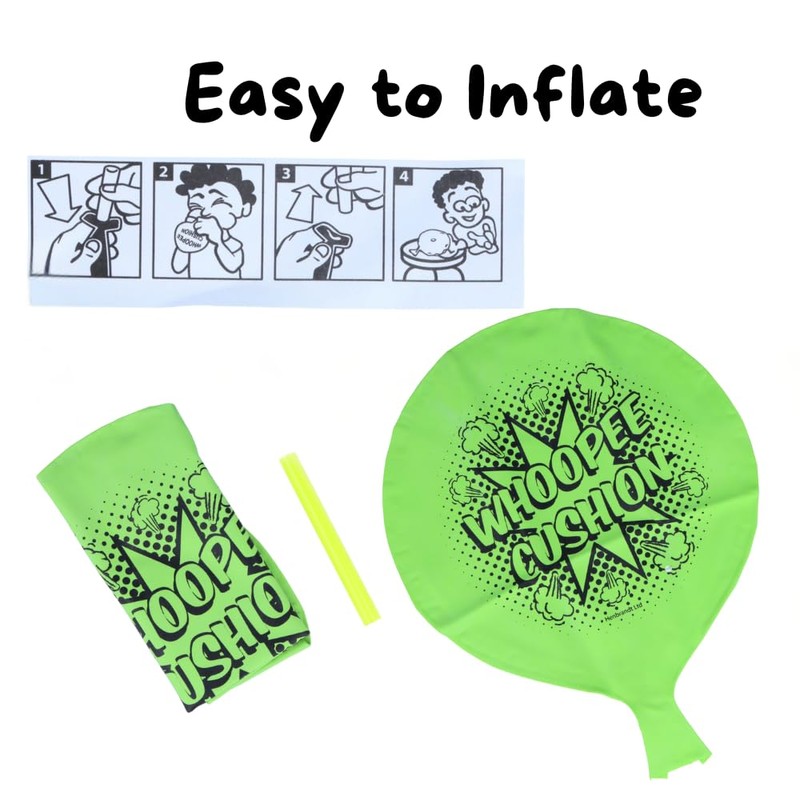 - 💨 EASY INFLATION – Each cushion includes a reusable straw; blow up, seal, and place on a chair for instant comic relief