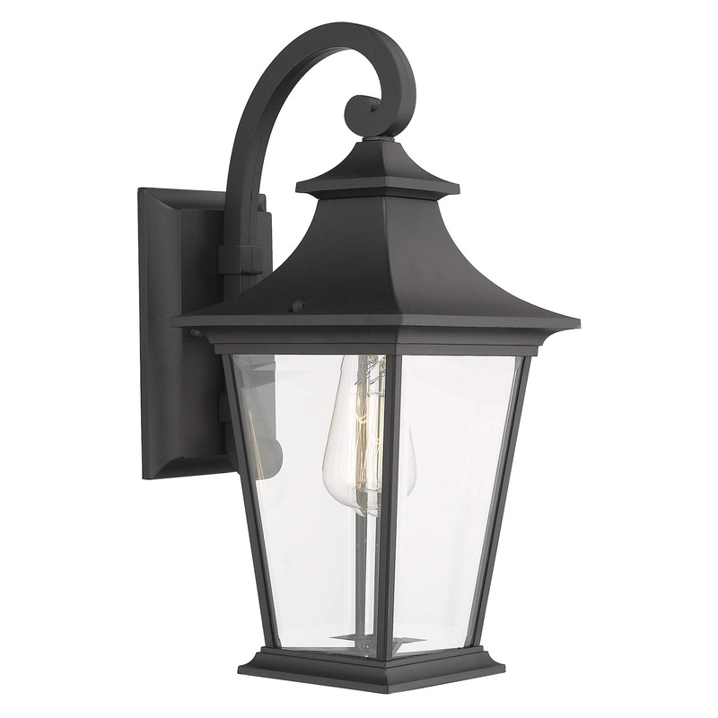 Emliviar Outdoor Wall Lantern, 1-Light Exterior Wall Mount Light with Clear Glass in Black Finish, 18" Height, 500181