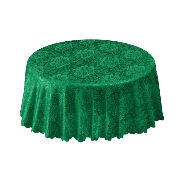 Emma Barclay Damask Rose - Jacquard Table Cloth in Forest Green - 70" (178cm) Round