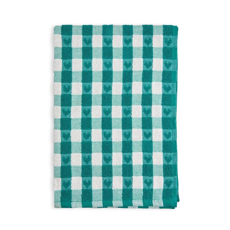 Emma Barclay Jumbo Heavy Weight Check Kitchen Tea Towel with Heart Detail (Green)