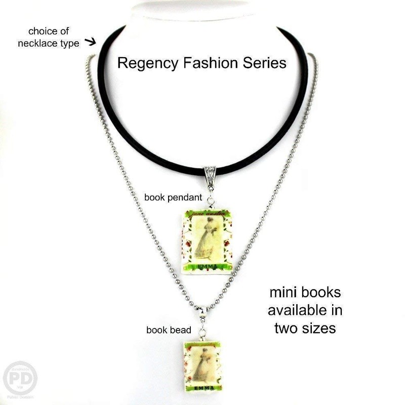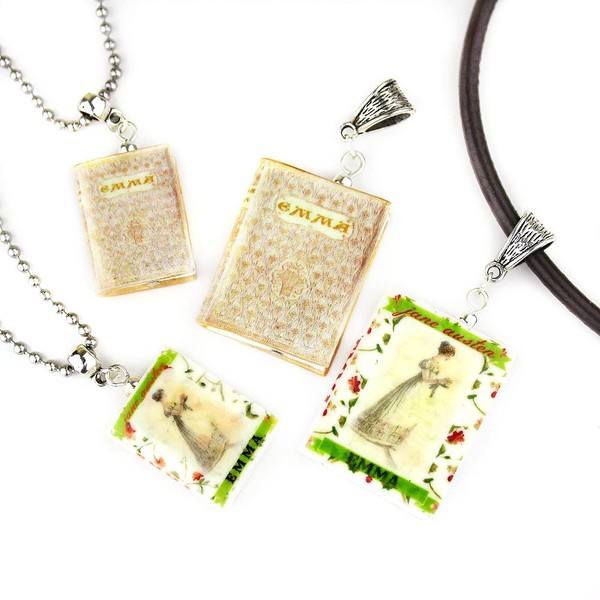 Emma Jane Austen Clay Mini Book Bead Pendant Necklace Chain Cord Extender Clasp Unisex