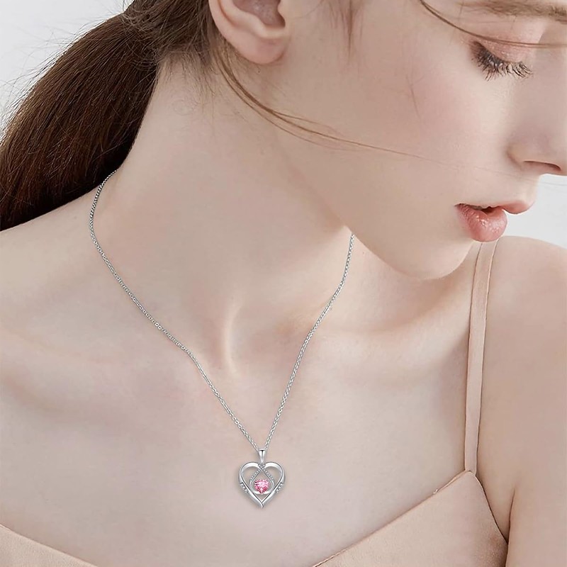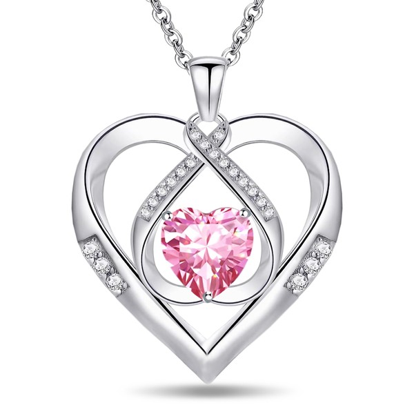 Emma Manor EM 925 Sterling Silver Pendant Necklace for Women 5A Flawless Heart Shape Brilliant Cut Cubic ZIrconia,Jewellery Gift for Wife Girlfriend (Pink)