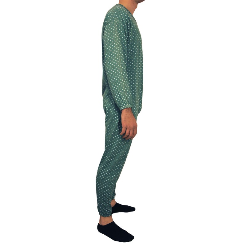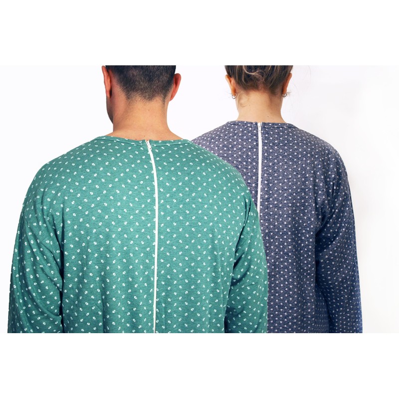 eMMe SQUARE - Long Sleeve Summer Health Pyjamas with Back Zip, Health Suit for Disabled and Degent Elderly, Lightweight Cotton, Made in Italy, Dark with Pattern-Men, S
