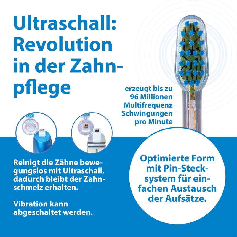 - Optimal dental care: the suction effect produced removes biofilm and other deposits from the tooth and thus ensures effective tooth cleaning