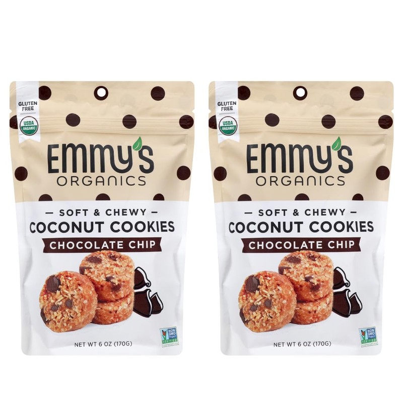 - Contains 2 packs of Emmy's Organics Chocolate Chip Coconut Cookies (6 oz each)
