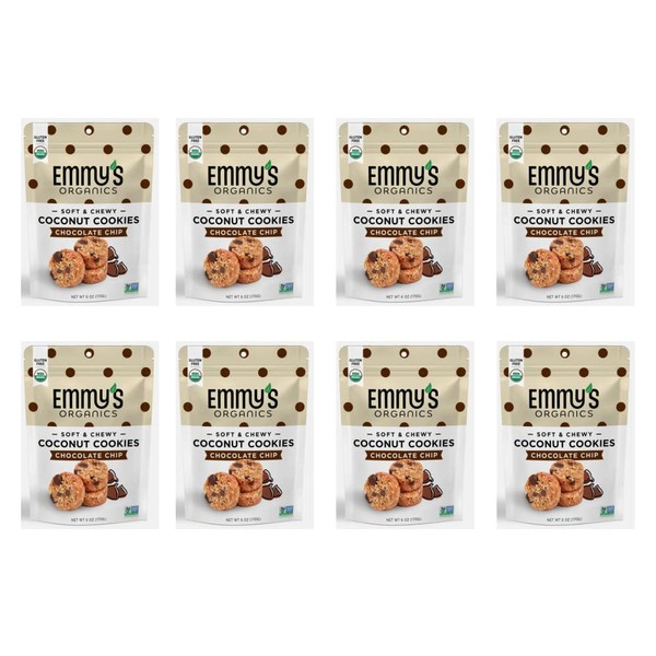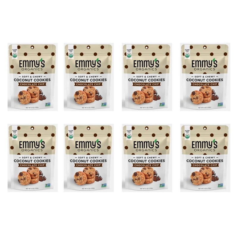 • Contains 8 packs of Emmy's Organics Chocolate Chip Coconut Cookies(6 oz each)