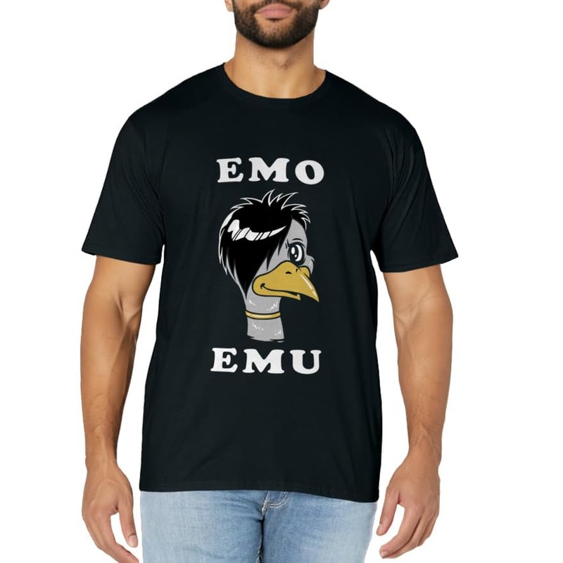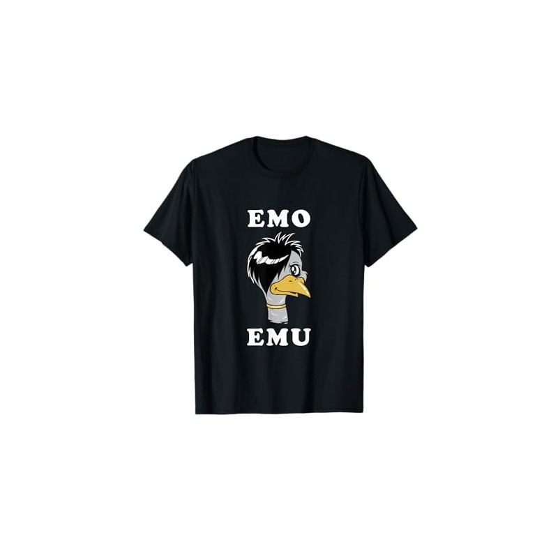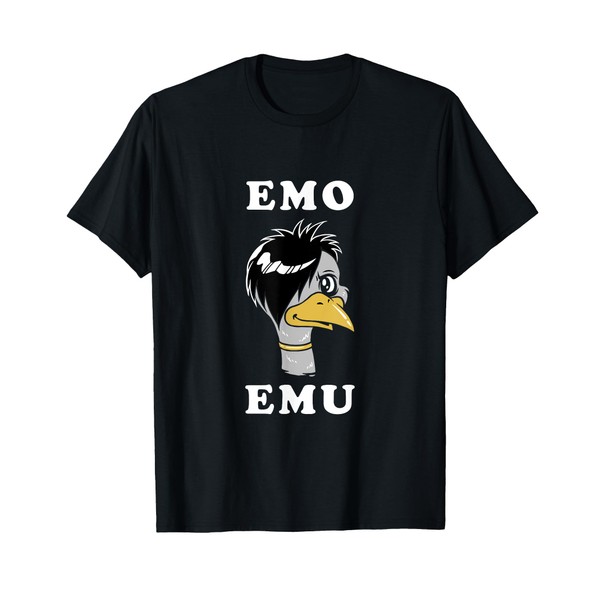 - Emo Emu T-Shirt. Funny Metal Goth Emu Bird Shirt for goths, emos and emu bird fans everywhere. Available in men's, women's, youth and kids sizes, this novelty graphic tee shirt makes a great gift.
