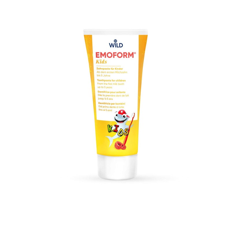 - E EMOFORM Kids young children‘s toothpaste with total protection for the first teeth. As soon as the first milk tooth comes through (between 2 and 8 months), you must brush it once or twice a day with a soft children‘s toothbrush and a pea-sized amount of EMOFORM Kids. This will protect the milk teeth against caries. The first dental check-up with the dentist should take place at the age of 24 months.