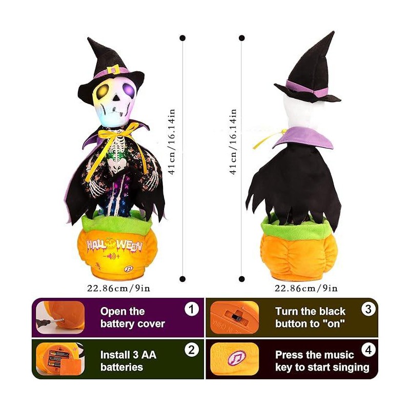 EMOIN Halloween Talking Dancing Cactus Toy Talking Singing Repeats & Records What You Say Interactive Plush with LED Lights Fun Gift for Kids Party Favors