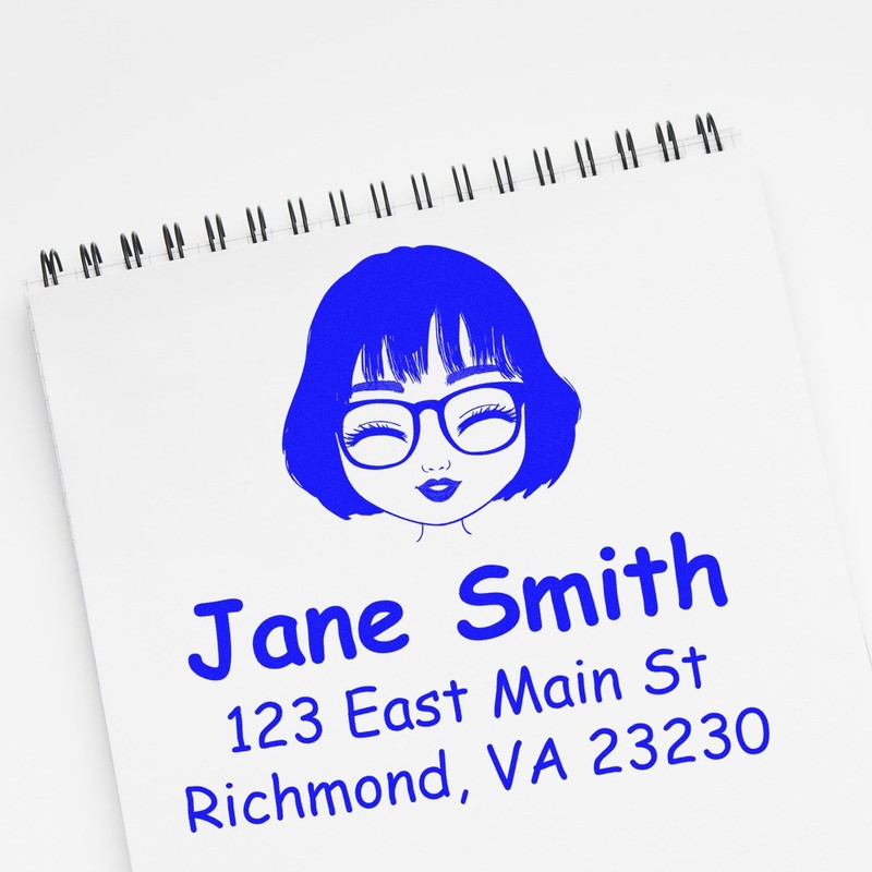 Crafted with precision, the laser-engraved rubber stamping dies maximum and durability. Your personalized Ms. Melanie Emoji Avatar icon will be accompanied by your name in a bold comic sans font, followed by your address in a plain comic sans font. This stamp can be customized with any text you desire, making it truly unique to you.