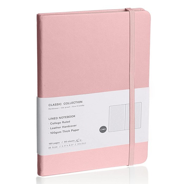 EMOMAS Lined Journal Notebook, (pink), 160 Pages, Medium 5.7 inches x 8 inches - 100 gsm Thick Paper, Hardcover