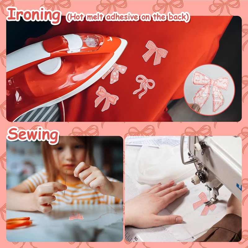 - Strong adhesive: Let your imagination run wild! Our bow iron on patches contain a high quality strong glue on the back, so you can iron it onto anything you want to add beauty to, not only clothes, but also backpacks, cell phones, books and all other fun places!